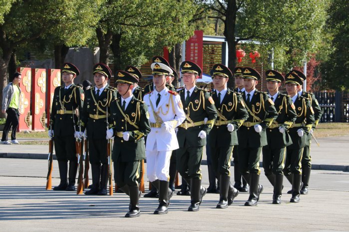 仪式开始前,国旗护卫队迎接友校国旗护卫队代表,并在国旗广场进行了升旗仪式和教官班队列展示。队员们身穿礼服,脚蹬马靴,神情庄重,步伐坚定。他们无懈可击的队列动作向嘉宾和友校战友代表展示了国护队良好的精神面貌。