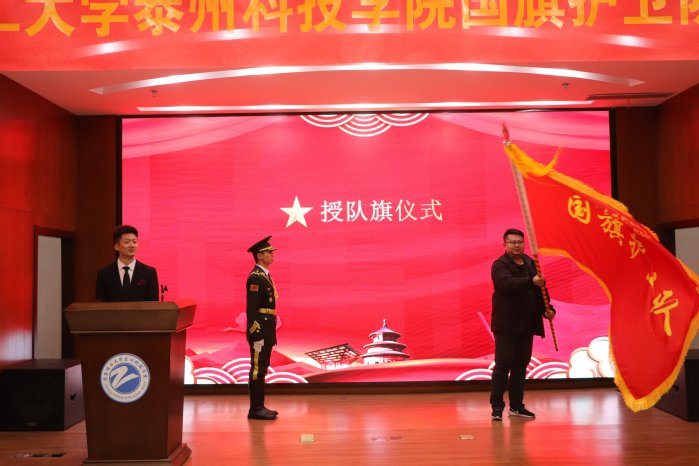 基础科学部副主任、直属党支部书记宗波,学工处副处长薛建华,团委副书记杨蕾,基础科学部团委负责人金魁,校学生会主席团成员等嘉宾出席本次大会。大会由基础科学部(优才班)周瑨主持。一同出席的还有南京中医药大学泰州校区、泰州学院、南京师范大学泰州学院、泰州职业技术学院国旗护卫队代表。南京理工大学、常州大学怀德学院等友校国旗护卫队也通过其他方式表达了祝贺。