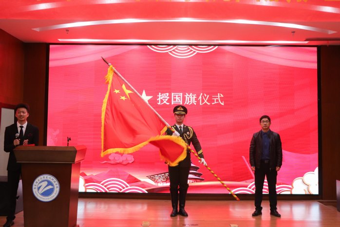 随后,举行了授国旗和授队旗仪式。宗波为国旗护卫队政治指导员金魁颁发聘书。