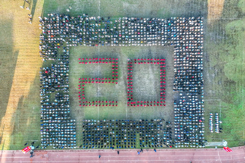 上午7时,校国旗护卫队迈着铿锵有力的步伐,护送五星红旗至升旗台。伴随着雄壮的《义勇军进行曲》,五星红旗冉冉升起。全体师生庄严肃立,行注目礼,齐唱国歌,深情表达对伟大祖国的热爱和对学校建校20周年的祝福。