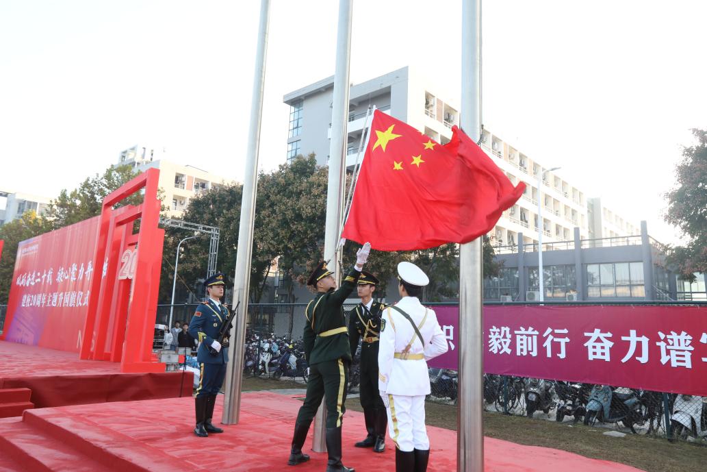 10月31日上午,我校举行建校20周年主题升国旗仪式,全体院领导、校友代表、师生代表共1700余人参加,仪式由党委委员、党政办公室主任崔海涛主持。